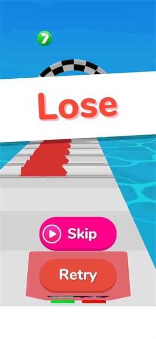 4、若不小心闯关失败,可选择观看视频跳过当前关卡,也能重新开始挑战。