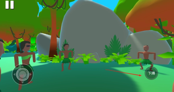 1、进入游戏后,眼前出现不少人群,点击右侧的下蹲按钮,跟着他们一同做操。