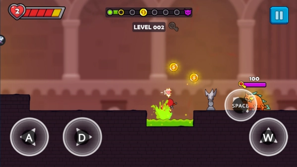 2. 在前进的途中会遇到怪物,战胜它们能得到金币,另外一路上还能捡到额外的金币和道具。