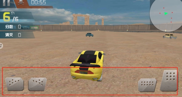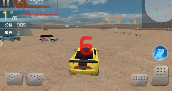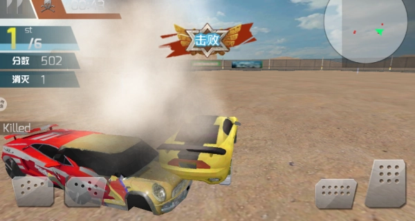 进入竞技场后,可借助左下方的按钮操控车辆方向,和其他车辆进行激烈的碰撞。