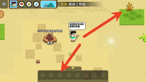 进入游戏世界后,第一步要收集木材、石块这类基础资源,制作必要的工具来提高生存效率。