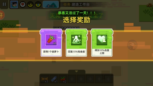 1、迷你像素的画风与轻松的音效相互配合,构建出一种紧张中又带着可爱的独特生存氛围。