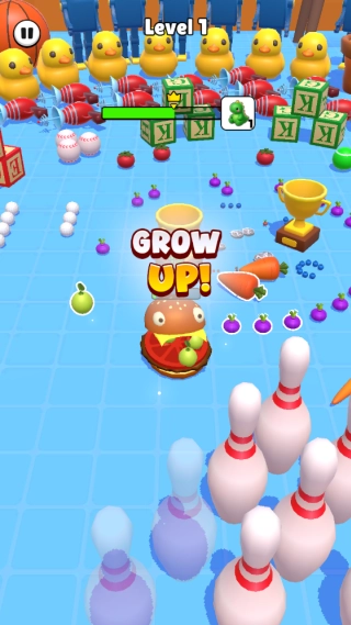 3. 通过持续吞噬来不断提升角色等级,最终目标是把场景里的所有物品都吃掉!