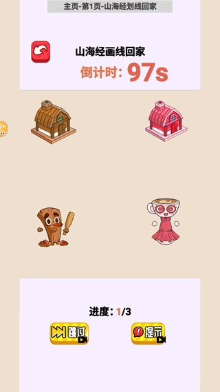 3、在《山海经》的划线回家模式中,玩家需要通过绘制线条来协助怪物迅速返回其居所,只要达成规定的进度就能顺利通关。