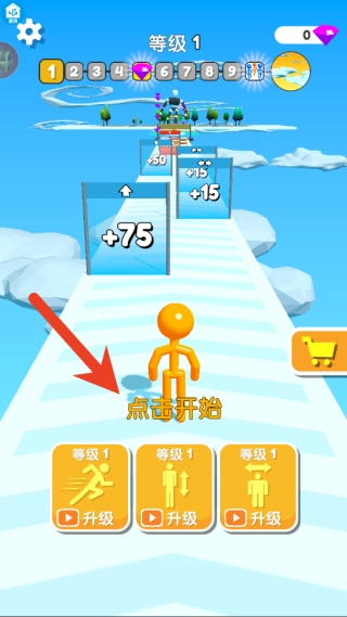 1、进入游戏后,首先选择你喜爱的果冻人角色,点击“点击开始”按钮即可正式开启跑酷冒险之旅。