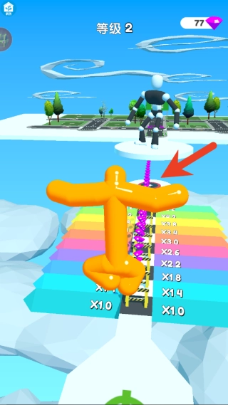 1、通过左右滑动屏幕控制果冻人移动,上下滑动实现跳跃或下滑,躲避障碍。