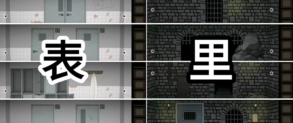 注:上图中“表里”各四个场景从上往下依次为场景一二三四,攻略中介绍场景以此为标准。