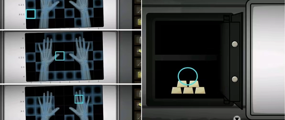 点击右边的观片灯在CT片上完成三个数独游戏打开后面的暗格,接着输入照片背后的时间即密码1710打开保险箱获得金条。