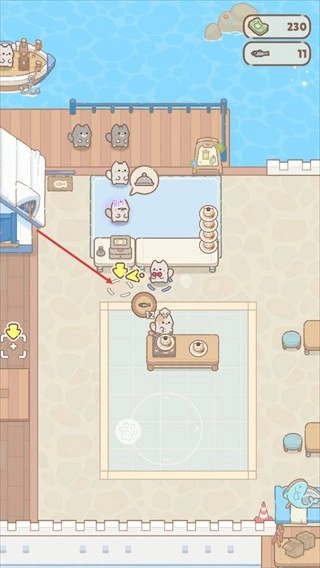 6. 整合餐厅运营玩法。玩家捕获的鱼可以作为食材制作各种美食,吸引猫顾客。