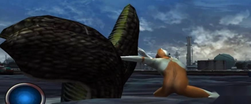 背面出现时可撂倒,但是要注意撂倒后不要上身攻击,因为你跳上去是抓不到它的,它会跳到海里边,然后从其他地方冒出来。