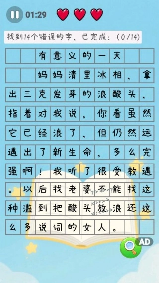 3、游戏里包含多种玩法,比如找出错误的成语、辨认错字、成语接龙等,有趣又能锻炼反应和记忆。