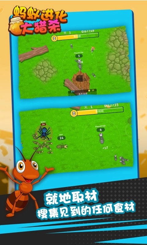 3、打造最大的蚂蚁战队,吃掉所有对手,获胜!