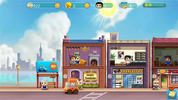 安装并打开游戏后,您将从一条基础的商业街道开始。首先,熟悉游戏界面,了解各项功能按钮。