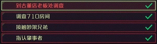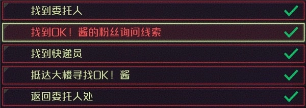 “蛛丝马迹”任务的触发条件是:返回安的公寓后,前往1楼即可。这是一个系列任务,包含4个支线,以下是任务一览。