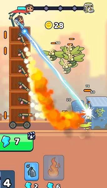 这是一款采用卡通美术风格的射击类游戏,玩家将投身激烈的战斗场景,持续面对并挑战各类强大的对手。通过成功击败这些敌人,玩家能够获取游戏内的货币资源,这些资源可用于解锁新的武器装备或对自己的载具进行性能升级,从而逐步增强自身在游戏中的综合战斗能力。游戏的核心目标是协助人类对抗威胁并重建安全的生存空间,玩家需要精心打造和强化自己的战车,与源源不断的敌对生物进行一场场紧张刺激的生死较量。整体玩法设计富有深度,对玩家的操作技巧和策略规划能力都提出了较高的要求。