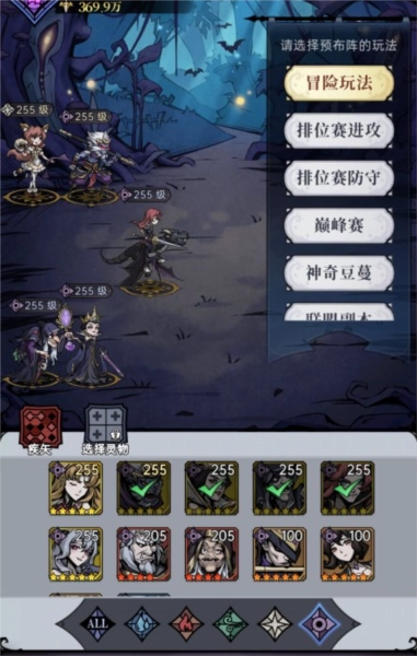 暗黑骑士、魔镜王后、邪魔悟空、疯外婆与女仆苏菲组成的阵容堪称强悍升级版,不仅实用性拉满,更是攻守一体、近乎天下无敌。其中,暗黑骑士顶在队伍前排,以坦克身份吸引敌方火力,为其他队友筑起坚实护盾;魔镜王后与邪魔悟空则是阵容的核心输出担当,负责倾泻主要伤害;疯外婆和女仆苏菲作为强力辅助,全力提升队友的生存能力与续航水平。
