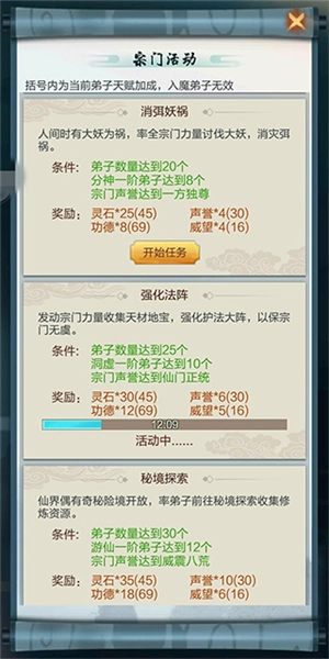 进入后选择与自身境界对应的任务即可,开启后系统会自动执行挂机操作。需要注意的是,更换境界后务必重新启动任务,即便界面显示处于挂机状态也可能未实际运行,所以换界后最好重新开启一次。若当前显示为挂机状态,可先点击低等级任务,再切换至对应等级的任务。