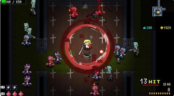 这款游戏的推进速度比较快,游玩过程能带来一定的畅快感。它的玩法和传统地牢类游戏,尤其是同类型包含roguelike元素的2D射击游戏相类似。游戏里所有关卡的地图都是随机生成的,角色可以同时携带近战和远程两种武器,玩家在游戏过程中可以通过收集怪物掉落以及开启宝箱得到的道具来提升角色的各项属性。