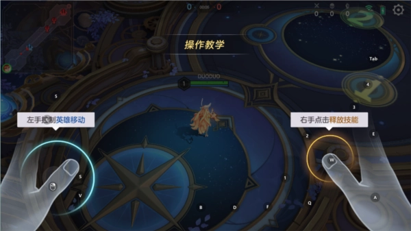 创建好角色后进入新手教程,游戏采用横版操作模式,左手控制英雄移动,右手点击释放技能。