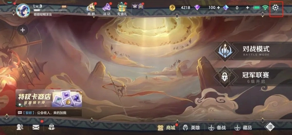 打开曙光英雄,点击右上角设置按钮;