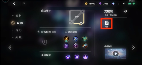 在游戏大厅的【英雄】板块中,选择任意英雄后进入其【攻略】界面,即可查看该英雄的分路建议、装备推荐,以及文字或视频形式的攻略内容。