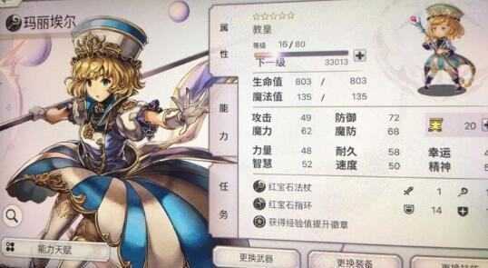 风属性角色,主要是战斗宣言全体力量30%+智力30%,非常给力的角色。
