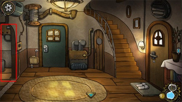 随后我们回到大厅,点击通往二楼的楼梯就能上到二楼。点击右边的门,门就会打开。