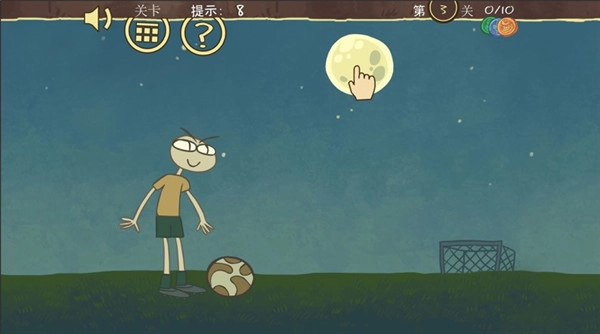 第三关的通关步骤是:首先点击空中的月亮,待月亮落到地面后,再次点击月亮即可完成此关。