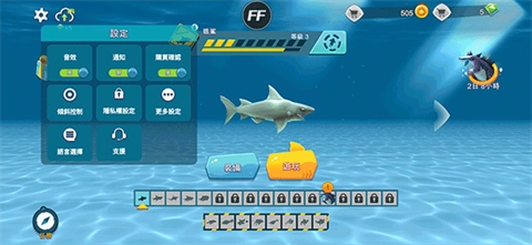 完成50个任务,通过寻找宝物获取金币和宝石,这些资源可用于升级你的鲨鱼,或者购买特殊的救生道具。