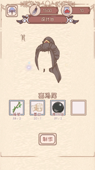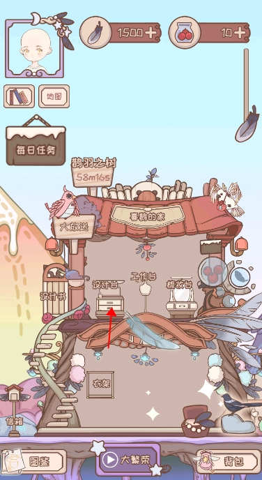 点击二楼的设计台即可查看获得的设计图服装,进而可以进行制作。