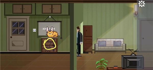 宝箱需要输入密码才能打开,按照墙上的提示可知密码是525。另外还要拾取橘猫,并将它拖动到妻子身上。