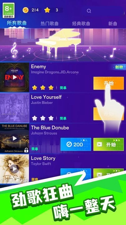 3.大量的歌曲和关卡等待你去解锁与挑战,十分时尚潮流。