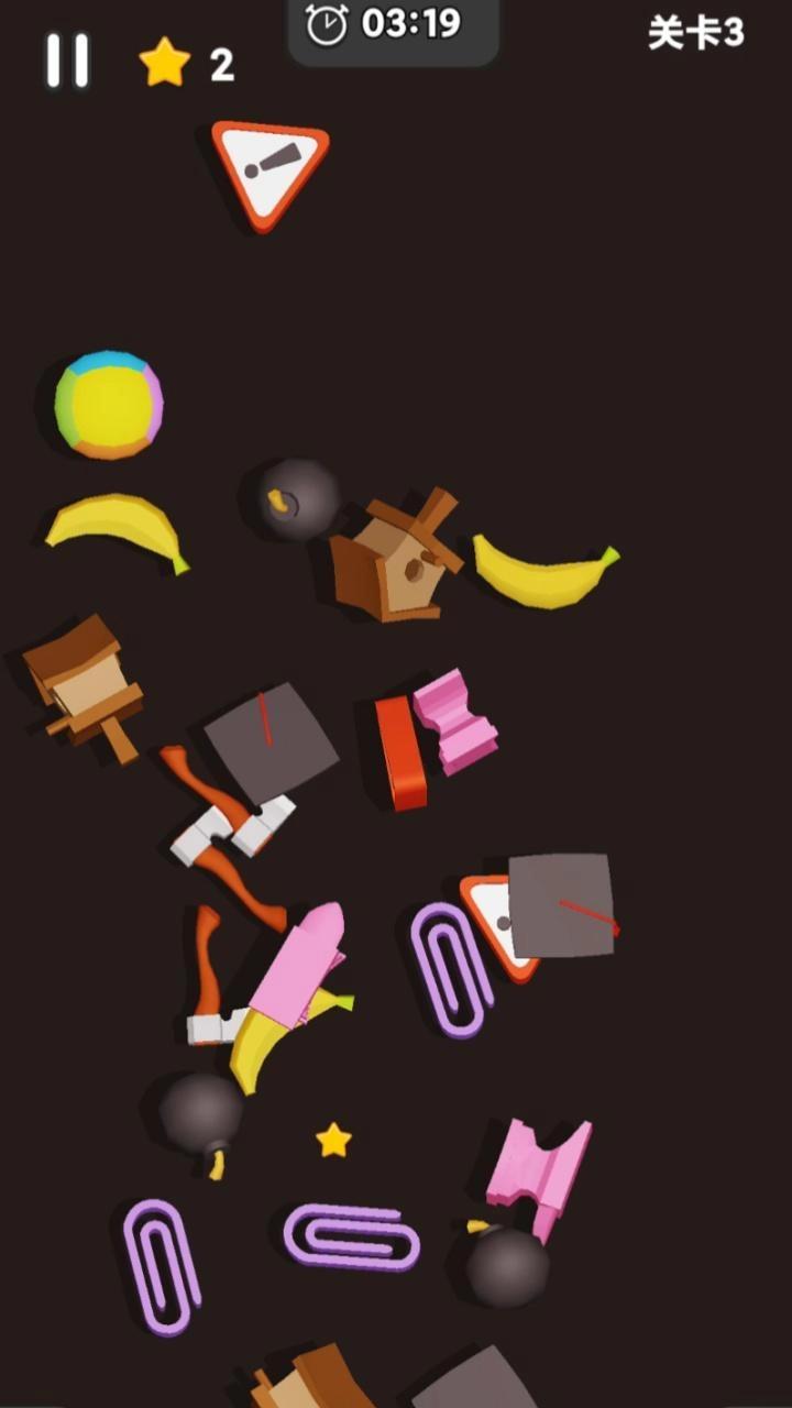 2、按照关卡的顺序去进行挑战寻找三个相同的物品,把它们消除。