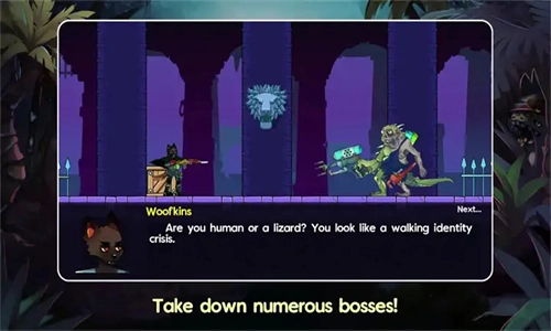 《吠叫与爆炸》是一款2D像素风格的横版射击关卡游戏,这里有海量敌人等待你挑战,你可以尽情享受射击战斗的乐趣,而且随着游戏推进,还能体验到相当精彩的故事情节哦。