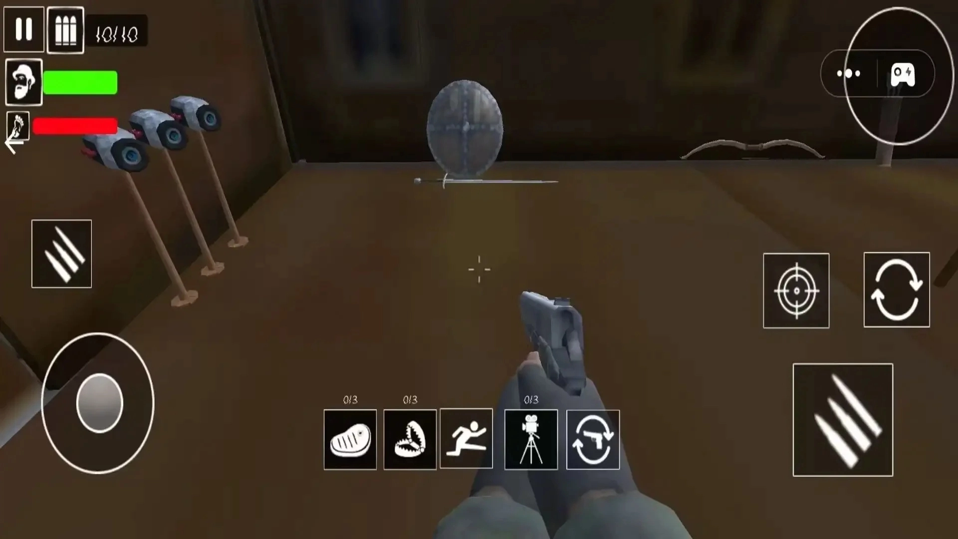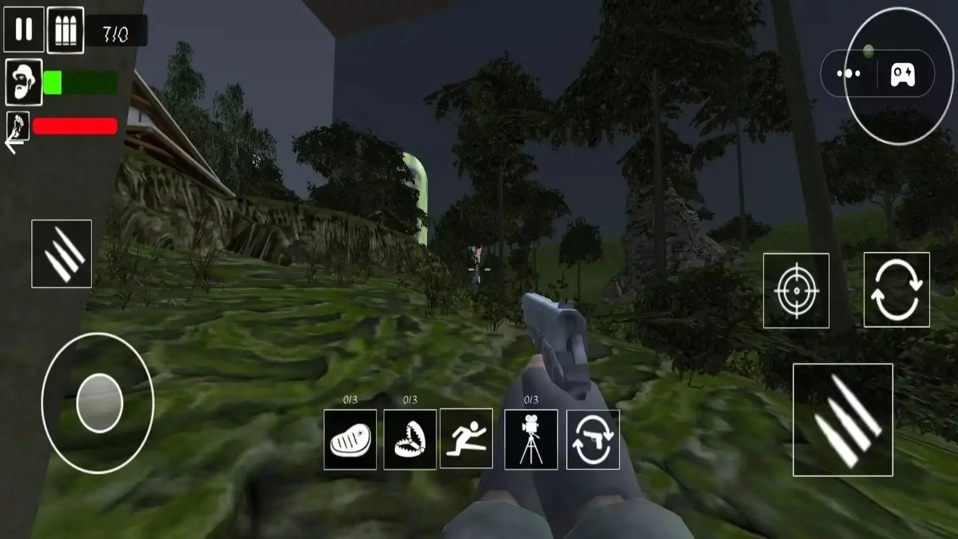 3、在闯关过程中,玩家还能借助屏幕上的操控按键移动角色以搜寻线索,同时利用各类武器装备攻击隐藏其中的危险生物。