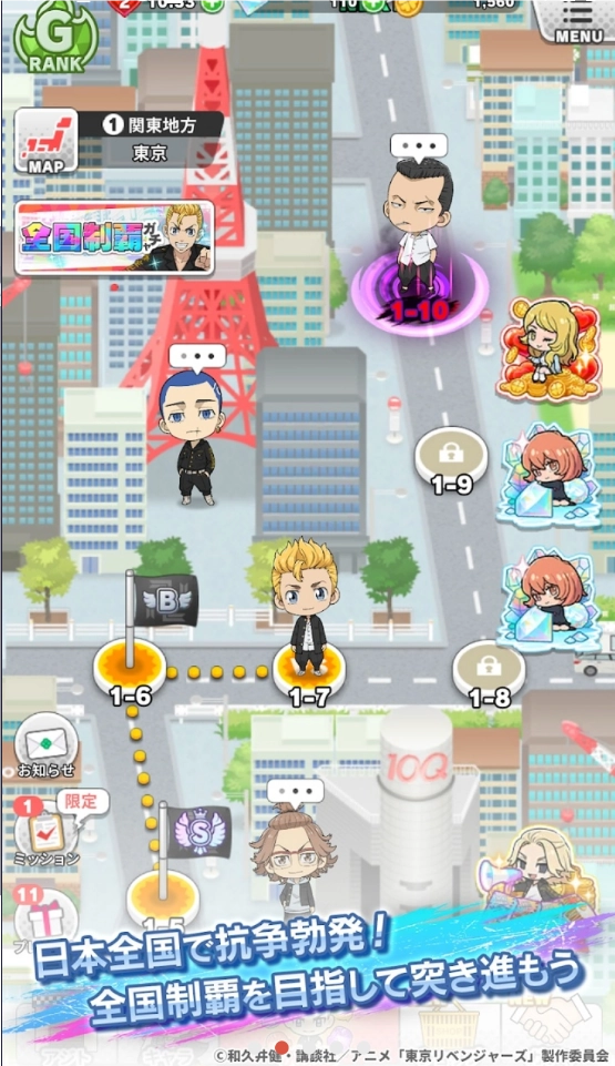 以经典动漫改编的,高度还原剧情故事和人物角色,【东京复仇者联盟】更有超刺激的战斗和三消玩法欢迎大家积极的参与体验。还能在线升级角色的技能,帮助伙伴们更轻松的完成任务挑战。超多关卡地图等你来探索,更能召集角色组建队伍,打败无数敌人。