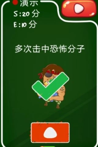 喵喵支招:真是无敌锻炼手速的一关,记得恐怖分子出现后一定要多次点击,若只点击一次只能得1分。