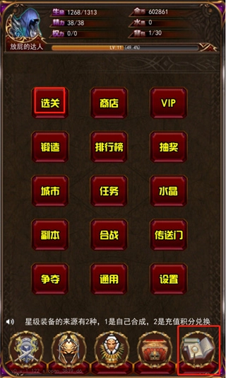 6、玩家在游戏里获取到装备后,可点击游戏界面下方的第四个按钮来完成装备穿戴操作。