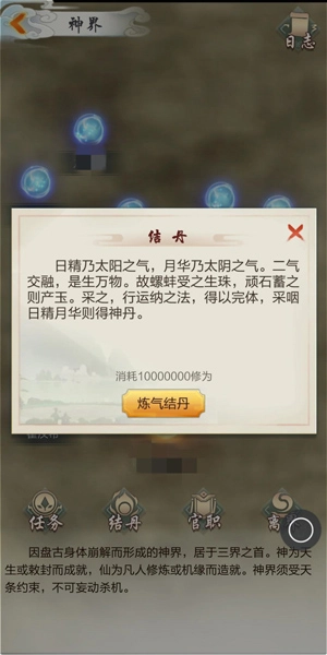 ①神界:当正气值满1000点,再缴纳1万灵石即可进入。在神界内可以吸取其他玩家的修为,每日最多可进行5次吸取操作。不过需要注意,一旦吸取他人修为就会变为红名状态,红名玩家可能被其他玩家踢出神界。而只要保持非红名状态,就不会被踢出神界(即使对方实力强大,也无法对非红名玩家执行踢人操作)。因此,实力普通的玩家建议尽量安静挂机,避免主动去掠夺他人修为。