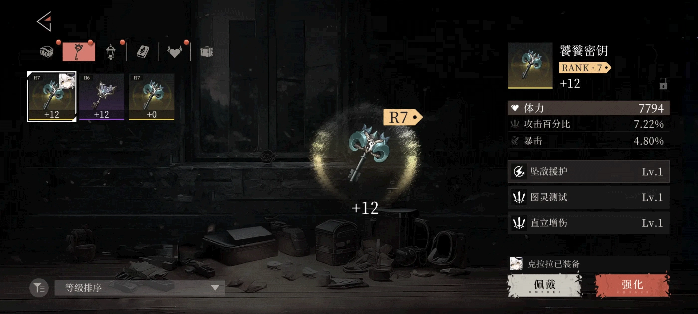 辉烬的角色培养系统融合了米哈游游戏里的圣遗物机制与怪物猎人系列的装备词条设计。游戏中的装备不仅有白、蓝、紫、金的品质区分,还设有rank等级——rank越高,装备的基础性能通常越出色。因此在前期开荒阶段,建议优先追求当前等级可穿戴的最高rank装备,不必急于凑齐完美词条,同时要把身上五个装备部位都强化到满级状态。