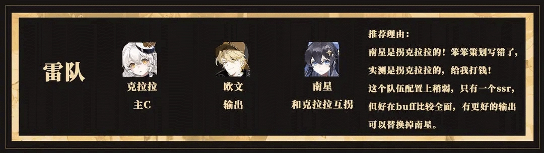 南星搭配自己喜欢的主力金卡就行,金卡方面结合内测情况首推北洛——毕竟是6元首充就能拿到的,内测时堪称数值天花板的存在,强度离谱到三冠北洛的伤害就能和四冠限定up的冰龙持平,而且操作难度还不算高,要是公测不对他进行调整,其他角色恐怕很难有出场空间。