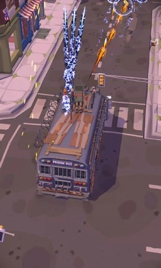 1、各种丧尸敌人会不断进攻,目标是尽可能长久的生存下去。玩家将驾驶公共交通坦克,逃避身后丧尸的追击,所获得的材料可以用来升级坦克,强化其武器和装甲。