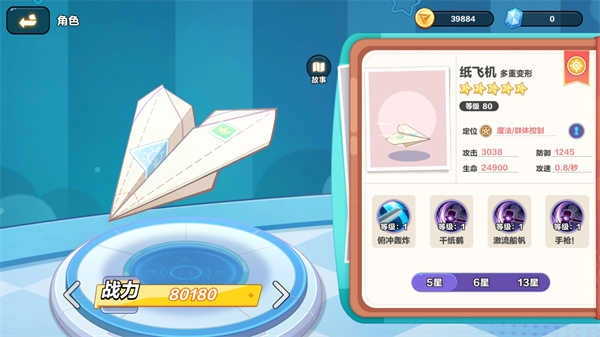 纸飞机拥有额外20%的魔法免伤效果,每当它损失10%的生命值时,就会变形为手枪,发射出一枚巨大的五角星,对飞行路径上的所有敌人造成70%的伤害并将其砸晕。