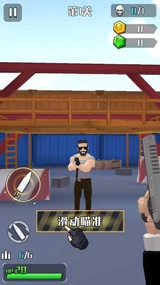 在主界面右侧上方,列有每日任务、主线任务等丰富的奖励机制说明;待熟悉基础信息后,点击“开始游戏”即可正式进入关卡,通过滑动操作瞄准并完成射击。