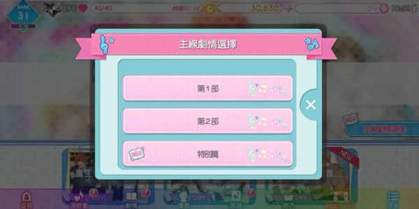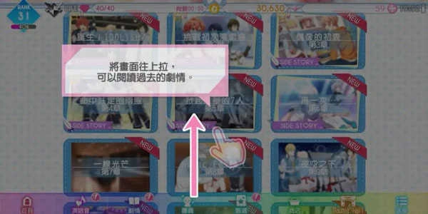 当我们选择第一个剧情线时,1到12章的左下角会出现“SIDE STORY”的标识,这意味着该章节包含支线剧情,而支线剧情需要通过参与歌曲演奏来解锁。