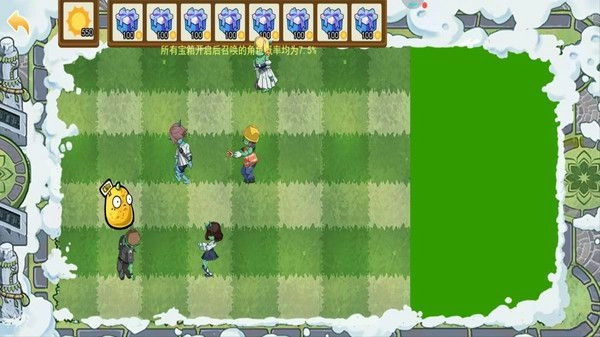 1、植物只能通过每个需消耗100阳光的盲盒来获取,开启盲盒得到的植物是完全随机的,宝箱中角色的召唤概率固定为7.5%,玩家需要将运气与策略相结合,以此打造出属于自己的独特军团。