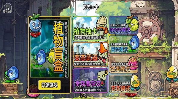 2、要是当前关卡里僵尸带来的防御压力比较大,可以把阳光集中起来连续打开盲盒,尽量抽到“变态武器植物”这类强力角色,以此增强防御能力。