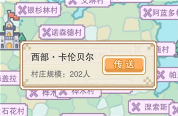 当然,如果你想去的点,没有驿站也没关系,继续点击驿站内的水晶,打开世界地图,任意找一个村庄,传送过去就好了。这样能直接更快速的到达你想到的地图角落。