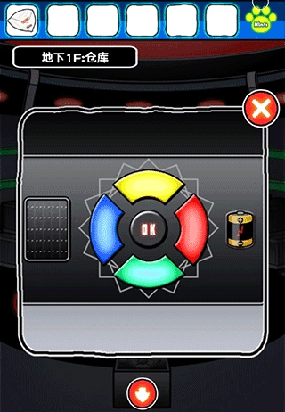 把电池放置在最下方的台子上,接着依据地板上的四种颜色依次点亮对应的区域,按下按钮后,就能顺利启动啦
