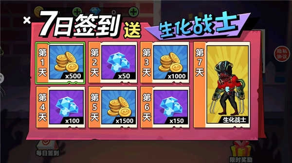 角色体系丰富多元,不同角色拥有独特的能力与属性,适配多样战术组合。另外,签到福利、任务机制以及资源获取方式,也为玩家打造了清晰的成长轨迹和持续的游玩动力。